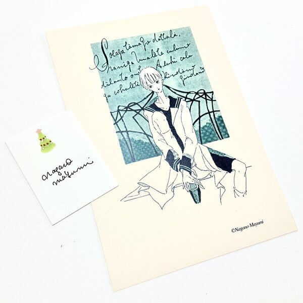 長野まゆみ「少年」イラストカード1枚と、ミニカード(直筆サイン入り)をお付けいたします。