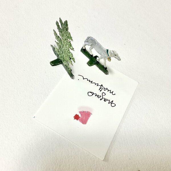長野まゆみが蒐集していた「錫(すず)細工」の樅木と子羊です。