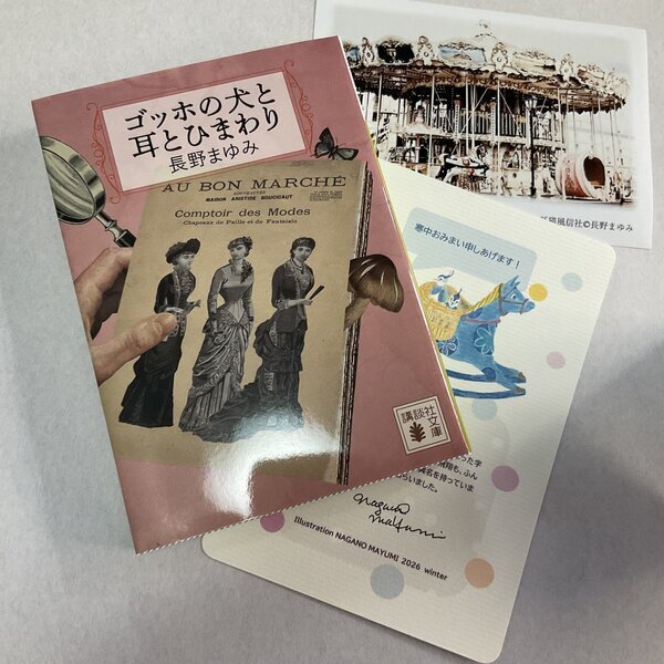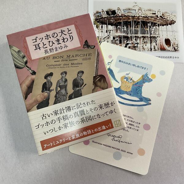 長野まゆみ新作「寒中おみまい申しあげます」ポストカードと、文庫「「ゴッホの犬と耳とひまわり」(講談社文庫 2025年5月15日刊)、「もっとゴッホくんNOTE01」とのセットです。