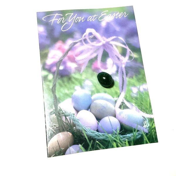 緑色の小さな卵石と、1990年代のグリーティングカードとのセットです。