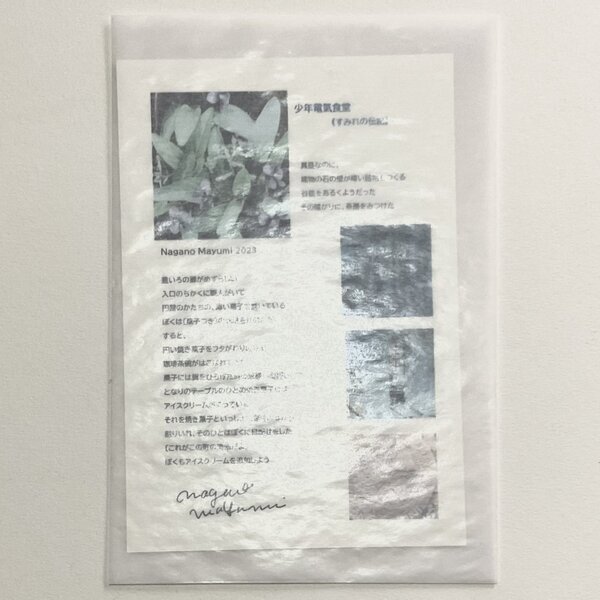 「スミレの伝記 こぼれ話」と「《少年電氣食堂》 すみれの伝記」は、長野まゆみがDesignし、葉書1枚ずつの構成となります。