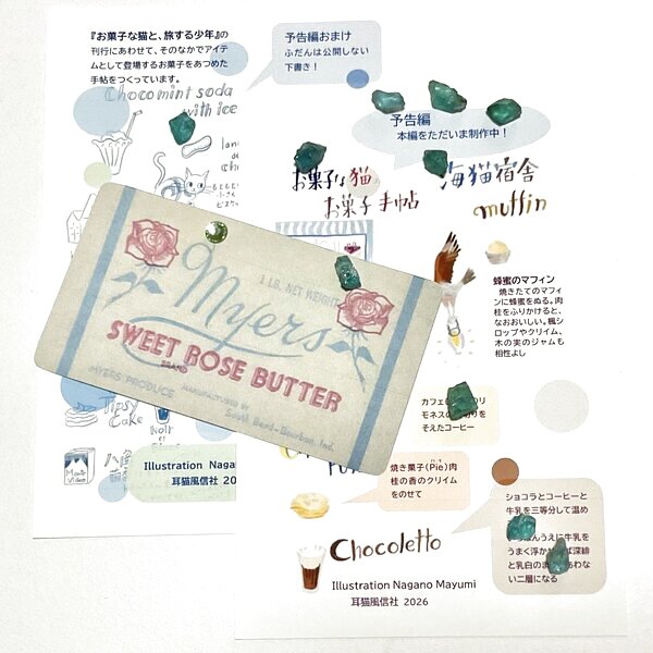 『お菓子な猫と、旅する少年』の刊行にあわせて、そのなかでアイテムとして登場するお菓子をあつめた手帖をつくっています。